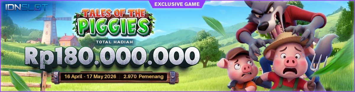 IDNSLOT menghadirkan game ekslusif terbaru yaitu Tales of the Piggies. IDNSLOT juga menghadirkan promosi cash drop ekslusif yang berlangsung mulai dari 16 April hingga 17 May 2026 setiap harinya pukul 00:00 WIB - 23:59 WIB. Total hadiah cash drop adalah sebesar Rp 180,000,000 yang akan dibagikan kepada pemain-pemain yang bermain di permainan Tales of the Piggies yang beruntung